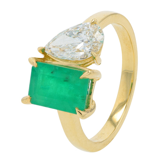 14K Lab Grown Diamond & Emerald Ring