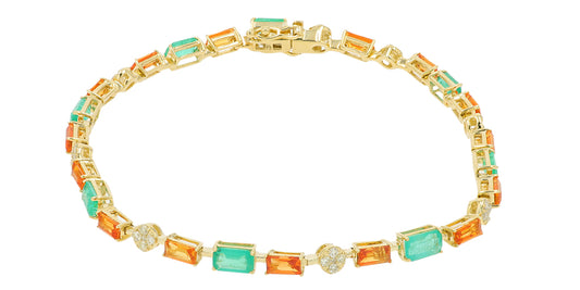 14K YG 5 CT Emerald & Orange Sapphire Bracelet