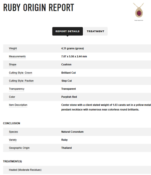 18K YG 1.03 CT Thailand Ruby Pendant