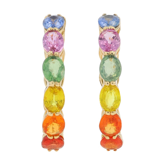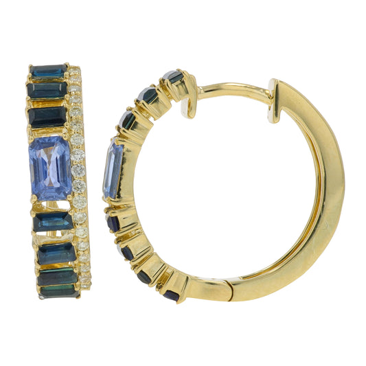 14K YG 5.50 CTW Multi Sapphire Hoops