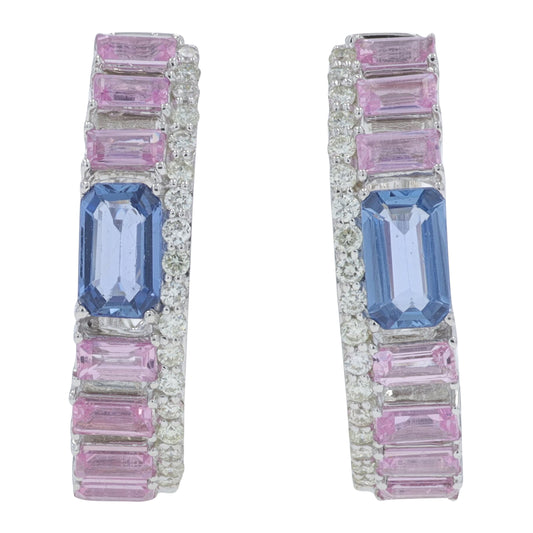 14K WG 1.60 CT Pink & Blue Sapphire Hoops